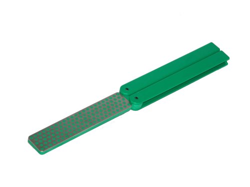 Folding plastic handles enclose the 4 in. x 1 in. Diafold serrated knife diamond whetstone sharpener. In extra fine/green grit. 9.5 in. open. 5 in. closed.ATTRIBUTES Grit: Extra Fine Material: Diamond Size: 4.25 in. Special Features: Muti-use in home camper tool box Type: PaddleThis website is a participant in the Amazon Services LLC Associates Program, an affiliate advertising program designed to provide a means for sites to earn advertising fees by advertising and linking to amazon.com